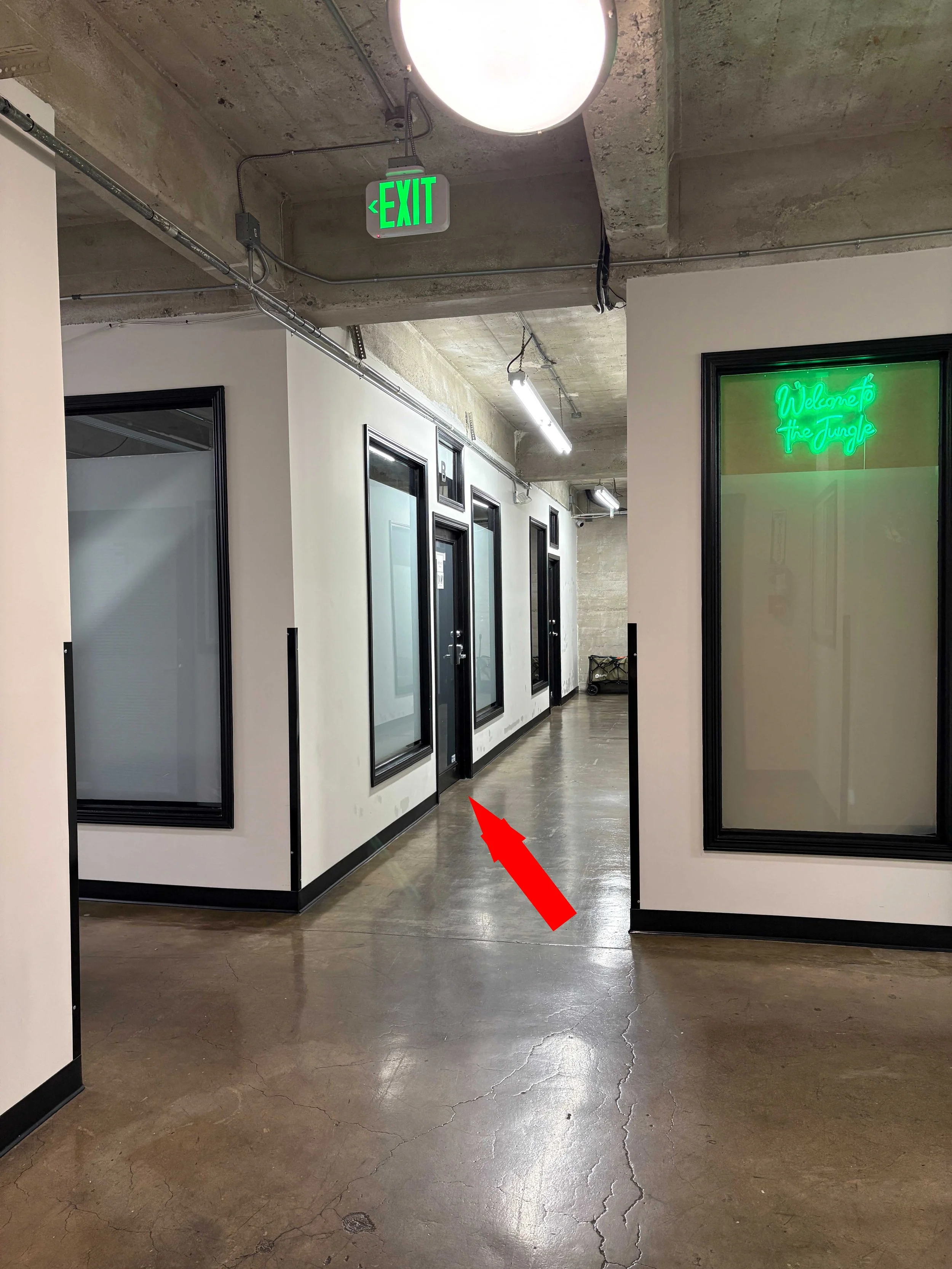 The red arrow indicates the exit going down.
